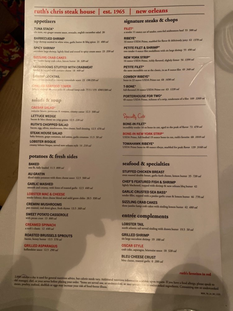 Ruth's Chris Steak House Lafayette Menu (Update 2025)